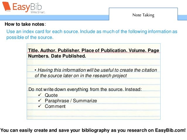 Write a bibliography card for every source. It will be easier to organize the sources alphabetically when creating the work cited page. Here are some resources on taking notes in index cards that i found useful as i was trying to make sense of my own system. Include the citation (i.e., author, title, publisher, date, page numbers, etc.) in mla format. Writing a statement of purpose) 4.